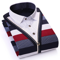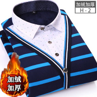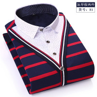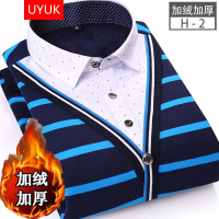 UYUK衬衫男2017新款男装冬季假两件保暖衬衫长袖加绒加厚中年休闲衬衣男士保暖针织衫毛衣