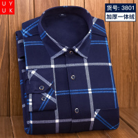 UYUK 秋冬季男士保暖衬衫加绒加厚长袖修身中年格子衬衣上衣男装打底衫