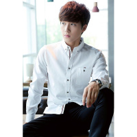 步来褶惠男士长袖保暖白衬衫男修身纯色衬衣职业正装白色夏