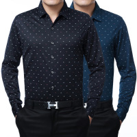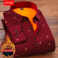 UYUK 秋冬新款加绒加厚衬衫男商务休闲格子韩版保暖波点中年爸爸装修身上衣长袖衬衣