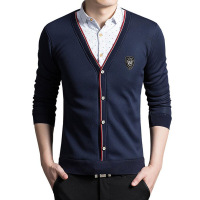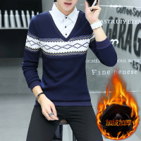 UYUK 2017秋冬季新款假两件男士加绒保暖衬衫针织杉外套修身衬衣男上衣
