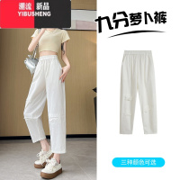 YIBUSHENG洗水棉假破洞休闲裤女季松紧腰冰丝直筒哈伦裤小个子九分萝卜裤