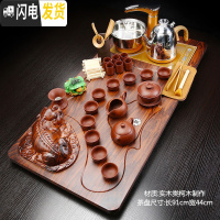 三维工匠大号简约一体家用全自动上水实木茶盘茶台整套紫砂功夫茶具套装 20芭乐色貔貅紫砂黑JDP套装