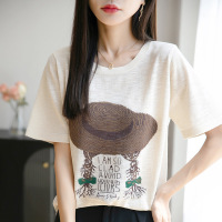 2026夏季短袖男士上衣圆领修身半袖衫打底衫刺绣时尚丝光棉潮ins
