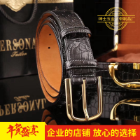 泰国鳄鱼皮皮带男士真皮腰带编织款肚皮不锈钢平滑扣板扣男式裤带