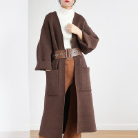 2018秋冬新款貂绒大衣加长款开衫外套长袖宽松女式毛衣腰带款上衣
