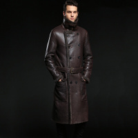 正宗原生态皮毛一体长款男真皮皮衣大翻领皮草大衣男皮风衣外套