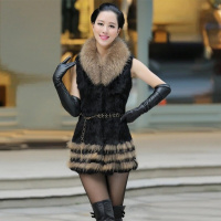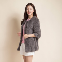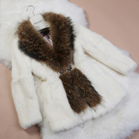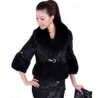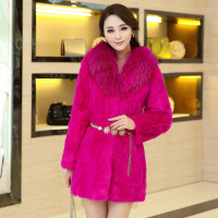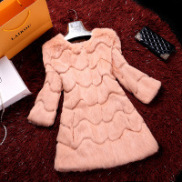 2014新款皮草外套韩版海宁皮草兔毛女款九分袖长毛毛领中长款女装