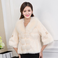 2017新款冬狐狸毛领整皮兔毛皮草外套短款女海宁七分袖控特价
