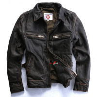 复古做旧男装男士机车款牛皮皮夹克摩托车服翻领休闲真皮皮衣做旧色