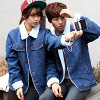 顺崇2017秋季韩版情侣加绒宽松翻领加厚羊羔毛牛仔外套女冬装棉衣6702