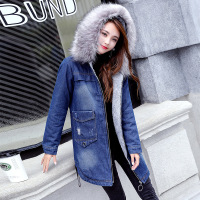 顺崇2017冬季羊羔毛牛仔外套女冬季新款大毛领中长款韩版加绒加厚棉服972#