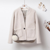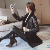 韩版皮毛一体外套女羊羔毛羊剪绒皮衣皮草中长款西装领黑色CYDDWQE