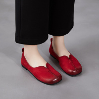软底软面真皮红色懒人鞋女2026春新款圆头平底孕妇一脚蹬浅口单鞋
