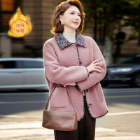 中老年妈妈秋冬装外套时尚仿水貂绒毛呢棉衣女士加绒加厚呢子上衣