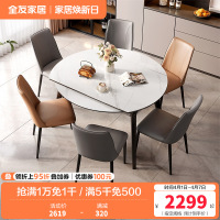 欧梵森 餐桌 意式亮光岩板餐桌轻奢实木可伸缩 折叠餐桌椅组合现代简约家用小户型圆桌长方形吃饭桌子欧式极简餐厅西餐桌