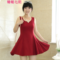 YIBUSHENG不规则开叉吊带裙子女季大码胖mm收腰显瘦遮肚内搭打底连衣裙潮