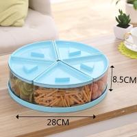 现代家用零食水果盘干果盘小麦分格带盖糖果盒创意塑料客厅干果盒-五彩缤纷 蓝
