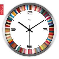 MOJU 创意艺术简约14寸彩色世界挂钟 客厅静音石英挂钟 装饰挂钟 墙壁挂钟壁钟 金属边框