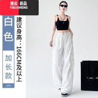 YIBUSHENG白色工装裤女春2024新款高腰宽松休闲直筒阔腿美式小个子运动裤