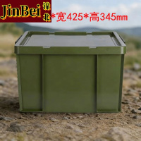 锦北塑料储物箱加厚收纳箱塑料整理箱带盖新军绿色615*425*345mm