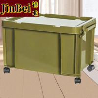锦北塑料储物箱加厚收纳箱塑料整理箱带盖军绿色带轮615*425*345mm