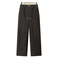 新款妈妈冬装松紧腰保暖直筒裤子中老年女装加绒加厚毛呢长裤