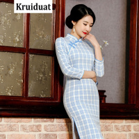 Kruidvat新款修身改良长款文艺复古民国长袖连衣裙JT