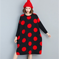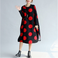 2017秋季大码女装宽松波点中长款文艺长袖圆领韩版连衣裙胖MM 黑色 均码