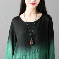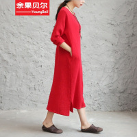 余果贝尔2017春新款宽松大码连衣裙长袖棉麻文艺双层棉皱打底长裙袍子