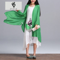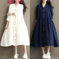 锦铭七玥色宽松文艺长袖中长款棉麻连衣裙波西米亚长裙女装2018春季新款