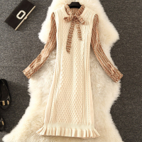 春装新品2016大码女装海魂衫娃娃领条纹长袖针织棉复古文艺连衣裙