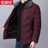 恒源祥冬季棉服男中老年加绒加厚红色羽绒棉衣爸爸装保暖外套男装