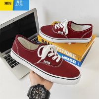 聚范酒红色帆布鞋男2024夏季新款复古男鞋百搭情侣休闲板鞋小众鞋子男