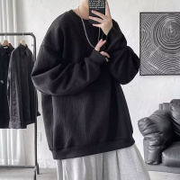 潮流卫衣男秋季新款港风宽松大码提花日系美式长袖圆领衫