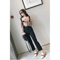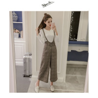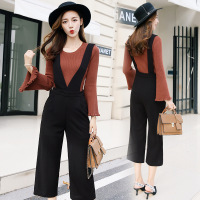 小个子穿搭背带裤+长袖T恤打底衫两件套户外休闲套装女装