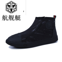 男靴子秋冬季英伦风百搭休闲鞋青年套脚高帮板鞋韩版平底学生迷彩运动中邦鞋