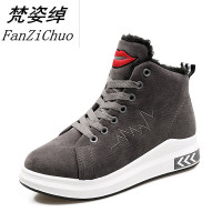 2017冬季新款百搭粉色女鞋韩版加绒学生休闲板鞋高帮保暖运动女棉鞋