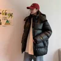羽绒棉服棉衣冬季男女同款连帽黑色烫金面包服棉袄2023新款厚外套