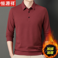 恒源祥薄款长袖t恤男中年秋装新款翻领打底衫爸爸装宽松体恤上衣