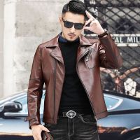2025新款海宁真皮皮衣男翻领绵羊皮夹克春秋季外套男士真皮皮衣绵羊皮夹克中年大码商务休闲翻领短款皮外男士外套皮夹克
