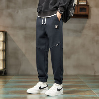 男士藏青通勤卫裤双抽绳设计束脚裤立体剪裁休闲裤拼接男装