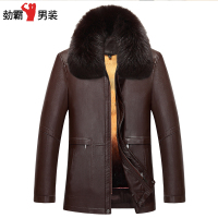 勎霸 男装冬中老年皮衣男士中长款仿真皮皮大衣可拆卸獭兔内胆 獭兔毛领尼克服休闲加厚保暖皮外套
