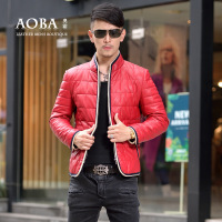 海宁新款冬季男装羽绒皮衣韩版修身潮立领男士皮夹克外套