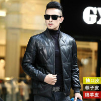 海宁真皮皮衣男绵羊皮修身薄款羽绒服中青年商务休闲冬季短款外套黑色