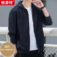 恒源祥新款春秋卫衣男士连帽纯色棉宽松上衣拉链开衫运动休闲外套