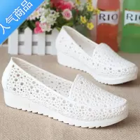 SUNTEK夏季坡跟白色护士鞋凉鞋女鞋塑料鸟巢镂空孕妇妈妈鞋工装鞋洞洞鞋