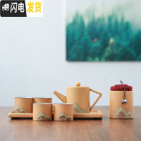 三维工匠远山日式提梁壶功夫茶具 办公简约家用手绘禅意陶瓷茶具礼盒套装 青云壶干泡组(鹅黄)