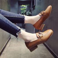 小皮鞋中跟单鞋女秋季女鞋新款百搭韩版方头英伦粗跟复古鞋子