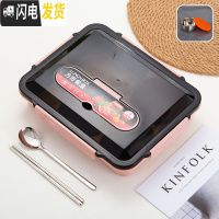 三维工匠304不锈钢保温饭盒分隔型餐盒上班族套装学生食堂带汤碗分格餐盘 大号五格北欧粉黑盖+汤碗送304筷勺